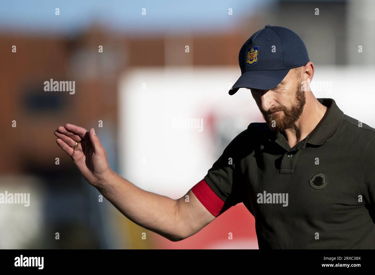 Beveren Waas, Belgium. 24th Sep, 2023. Beveren’s head coach Wim De