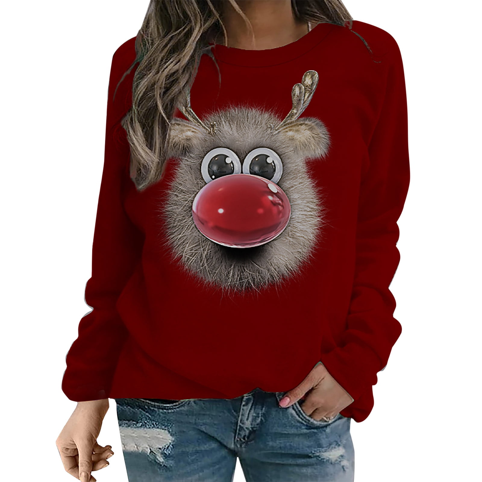 Fashion Women Christmas Moose Printing Long Sleeve Comfortable